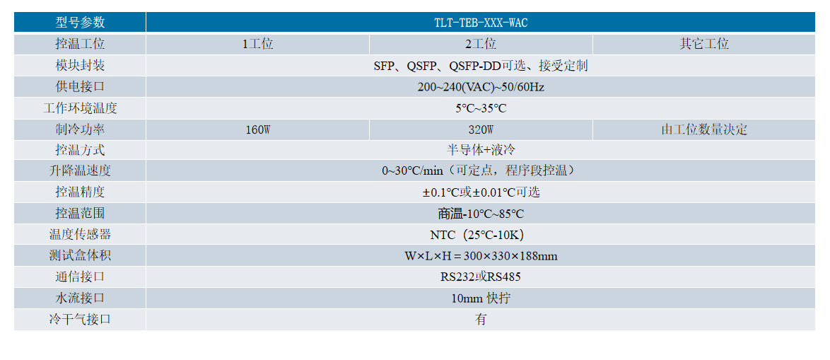 本系列的“半導體SFP光模塊高低測試盒”是建立在半導體制冷片(熱電制冷片)基礎上設計的高性能溫度控制系統(tǒng),其特點是高精度和高穩(wěn)定度、長壽命、體積小、無噪聲、無磨損、無振動、無污染、既可制冷又可加熱等優(yōu)點??販厮俣瓤欤瑴囟染鶆蛐院?,常溫25℃降至-45℃時間為小于150S,遙遙領先行業(yè)。該設備可以廣泛應用于光模塊、光器件及其組件、小型和微型化封裝的電子產(chǎn)品,在研發(fā)、生產(chǎn)各個環(huán)節(jié)的高低溫測試中。該儀器具備如下特點,能有效幫助企業(yè)提高生產(chǎn)效率、降低生產(chǎn)成本、快速提升產(chǎn)能。