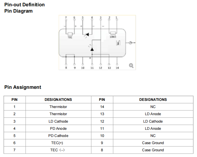 TLT-DFB-1310-10-SM 激光模塊采用平面結(jié)構(gòu),芯片安裝在基板上。高功率芯片封裝在無環(huán)氧、無助焊劑的 14 針蝴蝶封裝中,并配備熱敏電阻、熱電制冷器和監(jiān)測(cè)二極管。